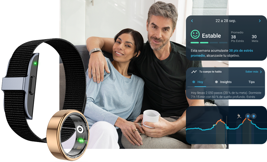 Detecta en tiempo real tus niveles de sueño, recuperación, estrés y más, para ofrecerte un mapa claro de tu energía y bienestar.